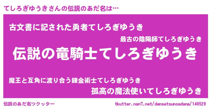 | 女子向けラノベタイトル風あだ名 | 『(仮)てしろぎゆうきのやんごとなき事情』 |