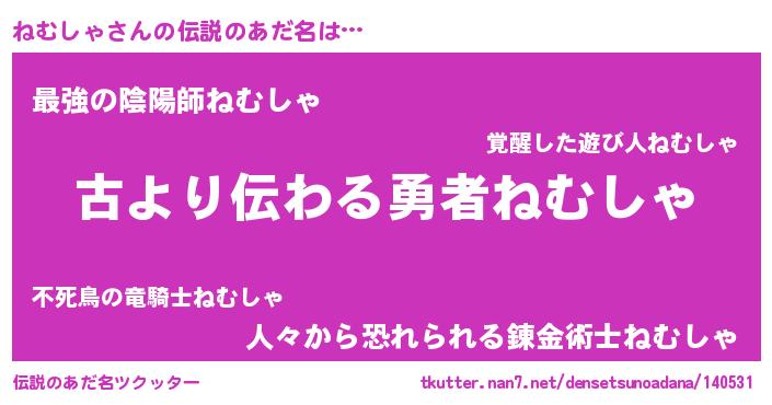 | ヒーロー風カッコイイあだ名 | 『ネオネムシャ』『ウルトラねむしゃマン』 |