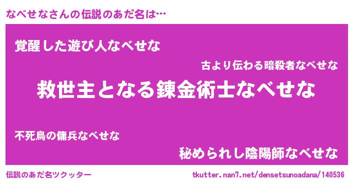 | ヒーロー風カッコイイあだ名 | 『慈愛の使者なべせな』『炎刃騎士ナベ』 |