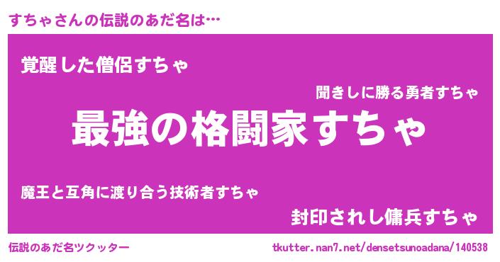 | ヒーロー風カッコイイあだ名 | 『ウルトラすちゃマン』『幻影騎士スチ』 |
