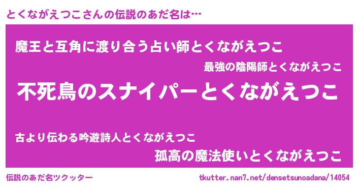 | 意味不明あだ名 | 『住所不定無職とくながえつこ(85歳)』 |