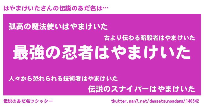 | ファンタジー風あだ名 | 『エターナルハヤマケイター』 |