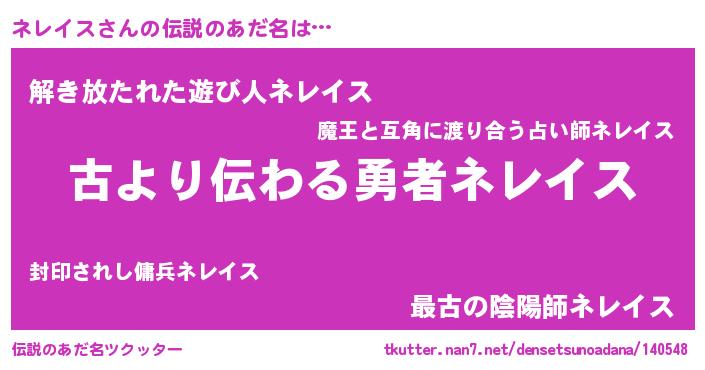 | 意味不明あだ名 | 『永久保存ネレイス』『自称ネレイス』 |