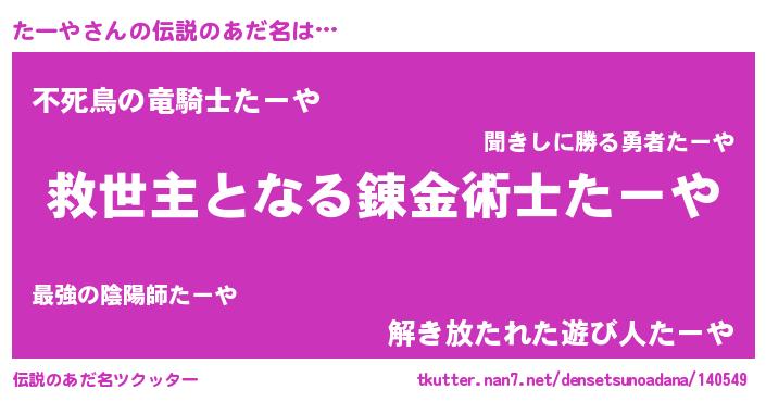| 女子向けラノベタイトル風あだ名 | 『死神たーやの再婚』『たーや様がみてる』 |