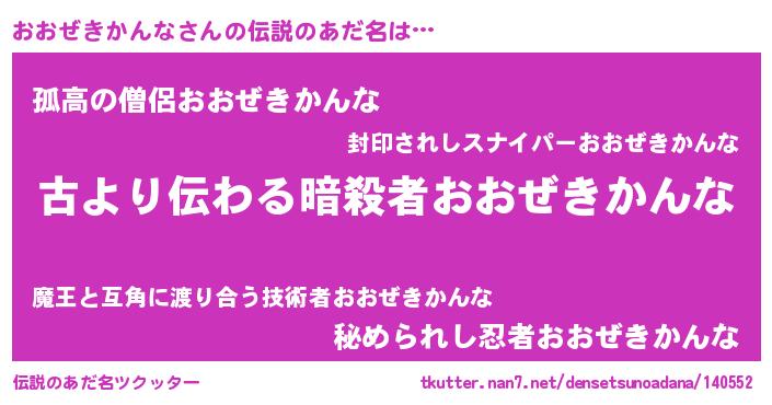 | 意味不明あだ名 | 『住所不定無職おおぜきかんな(62歳)』 |