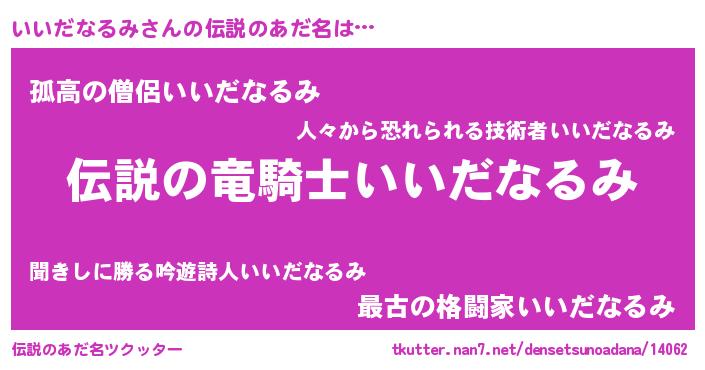 | 胡散臭い通販商品みたいなあだ名 | 『必ず成功するブレスレット…その名も「いいだなるみ」』 |