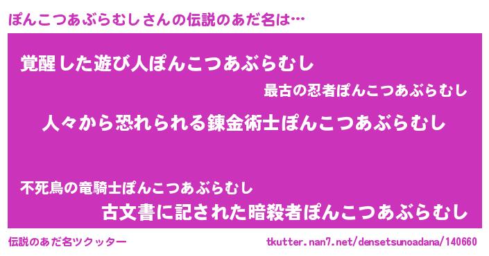 | ヒーロー風カッコイイあだ名 | 『正義の使者ぽんこつあぶらむし』 |