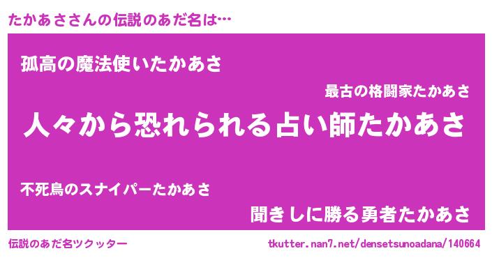 | 意味不明あだ名 | 『住所不定無職たかあさ(39歳)』 |