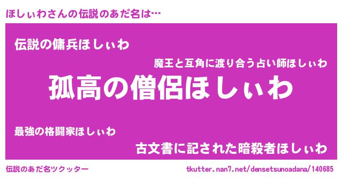 | ファンタジー風あだ名 | 『ファントムホシス』『ホシフェル』 |