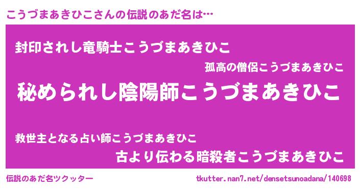 | ファンタジー風あだ名 | 『エターナルコウヅマアキヒコー』 |