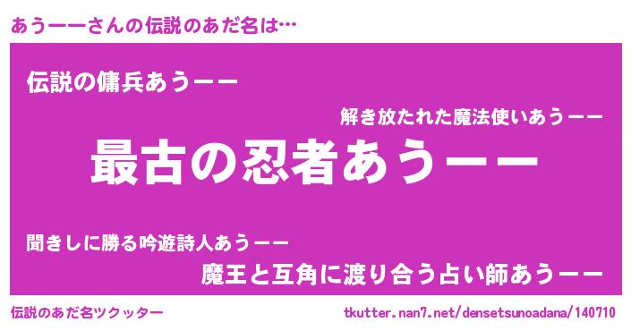 | ヒーロー風カッコイイあだ名 | 『ウルトラあうーーマン』『魔戒騎士アウ』 |