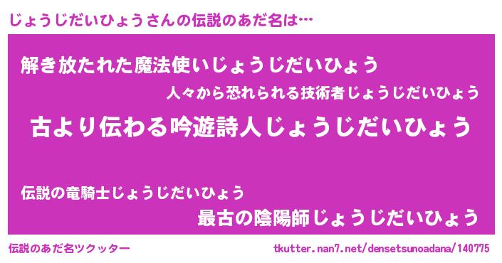 | 意味不明あだ名 | 『住所不定無職じょうじだいひょう(9歳)』 |
