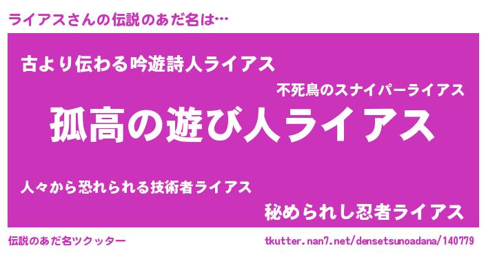 | ヒーロー風カッコイイあだ名 | 『魔戒騎士ライ』『ネオライアス』 |