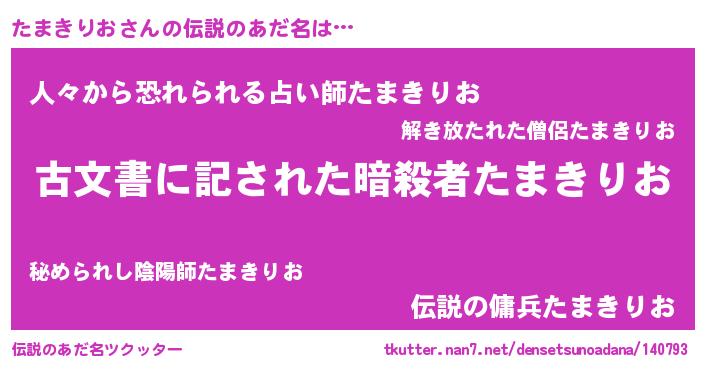 | 意味不明あだ名 | 『永久保存たまきりお』『自称たまきりお』 |