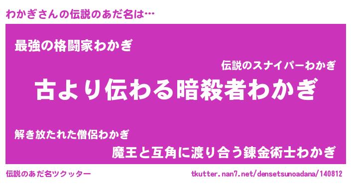 | 胡散臭い通販商品みたいなあだ名 | 『来世でも幸せになれる健康食品…その名も「わかぎ」』 |