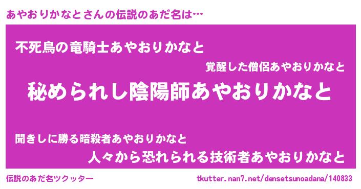 | ファンタジー風あだ名 | 『エターナルアヤオリカナトー』 |