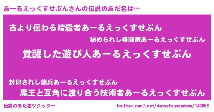 | 意味不明あだ名 | 『とにかく怪しいあーるえっくすせぶん』 |