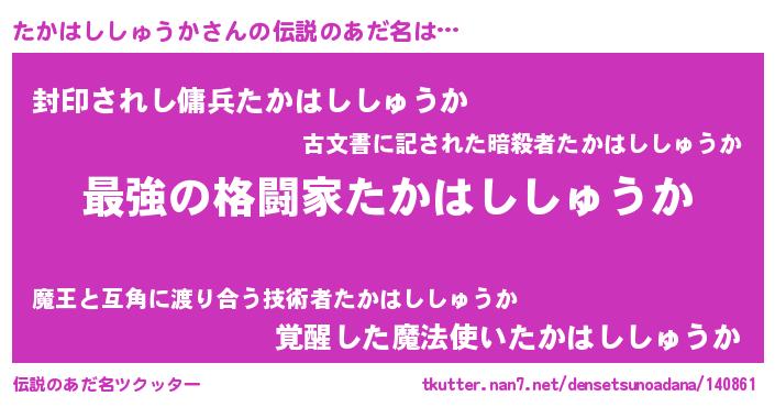 | 意味不明あだ名 | 『自称たかはししゅうか』 |