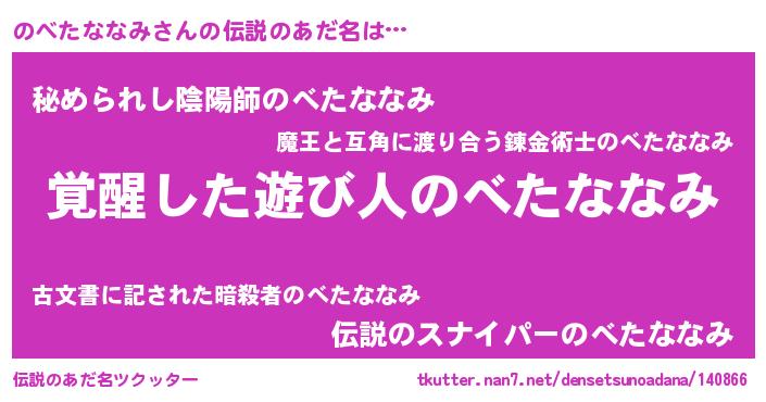 | ポケモン風あだ名 | 『ヒノベタナナミ』『メロノッベ』 |