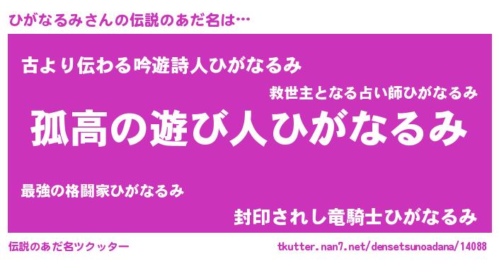 | ヘコむあだ名 | 『ひがぷりん』『ひがなるみ(小並感)』 |