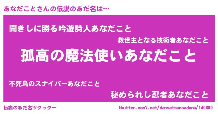 | 意味不明あだ名 | 『住所不定無職あなだこと(4歳)』 |