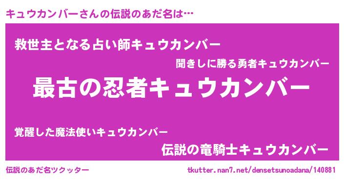 | 男性向けラノベタイトル風あだ名 | 『やはりキュウカンバーの青春ラブコメはまちがっている 』 |