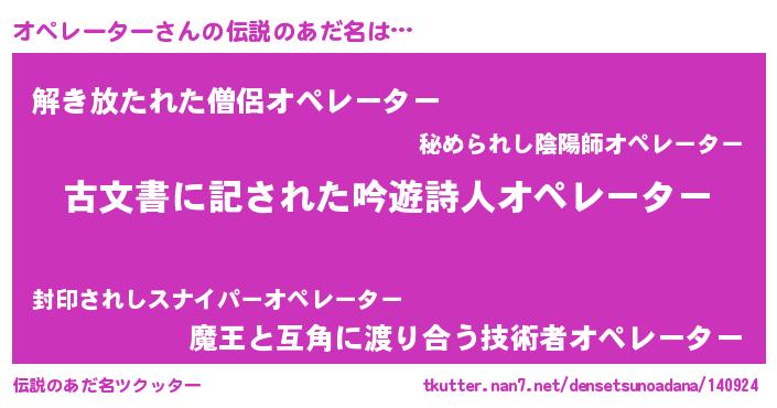 | ヒーロー風カッコイイあだ名 | 『ネオオペレーター』『銀牙騎士オペ』 |