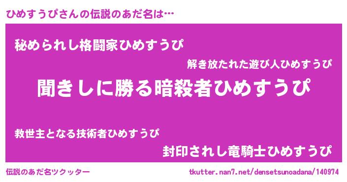 | 意味不明あだ名 | 『永久保存ひめすうぴ』 |