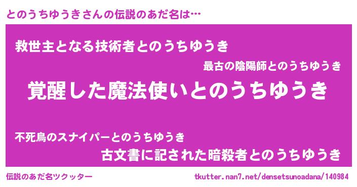 | 意味不明あだ名 | 『自称とのうちゆうき』 |