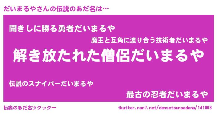 | ヒーロー風カッコイイあだ名 | 『幻影騎士ダイ』『ネオダイマルヤ』 |
