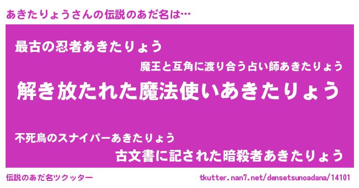 | 意味不明あだ名 | 『自称あきたりょう』 |