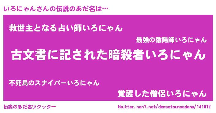 | 意味不明あだ名 | 『ニラ科いろにゃん属』『自称いろにゃん』 |