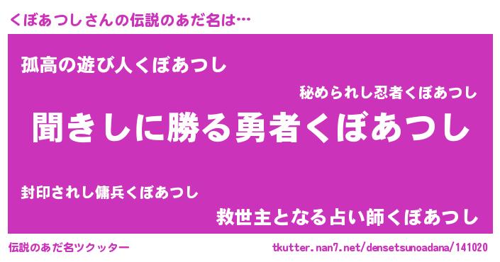 | 胡散臭い通販商品みたいなあだ名 | 『ハリウッド女優が絶賛した世界で10本だけ現存している希少なブランデー…その名も「くぼあつし」』 |