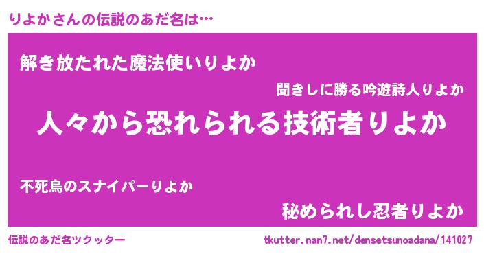 | 肩書あだ名 | 『りよか助教授』『りよか総統』 |
