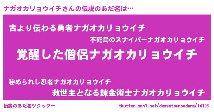 | 男性向けラノベタイトル風あだ名 | 『ナガオカリョウイチの嫁は女の子じゃないと思った?』 |