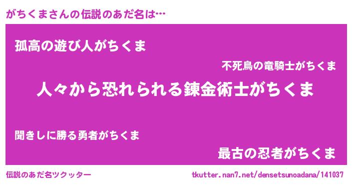 | 男性向けラノベタイトル風あだ名 | 『おまえをオタクにしてやるから、俺をがちくまにしてくれ! 』 |