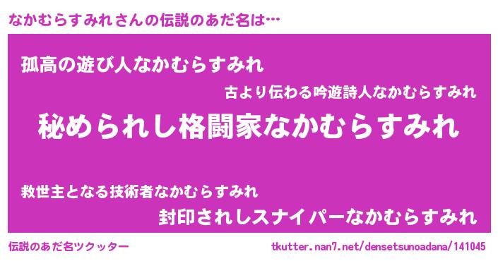 | 男性向けラノベタイトル風あだ名 | 『魔弾の王となかむらすみれ』 |