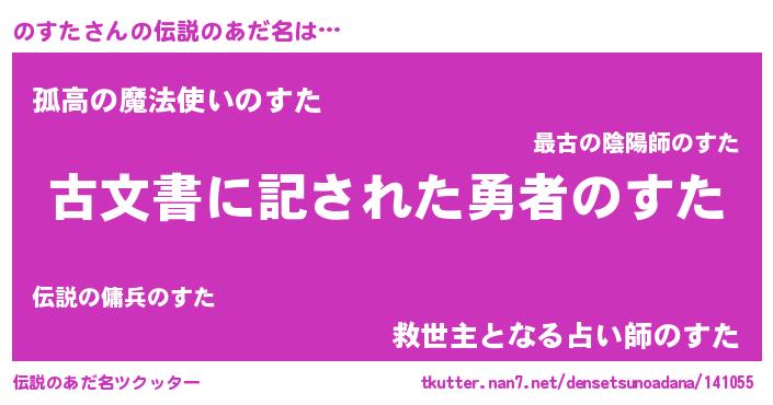 | 男性向けラノベタイトル風あだ名 | 『Re:のすたから始める異世界生活』 |