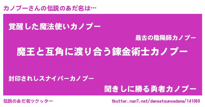 | 女子向けラノベタイトル風あだ名 | 『カノプー恋絵巻』 |