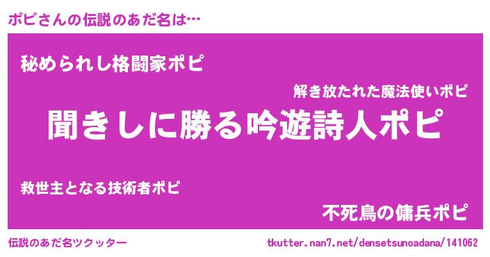 | 意味不明あだ名 | 『住所不定無職ポピ(11歳)』『永久保存ポピ』 |