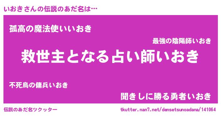 | 意味不明あだ名 | 『ヨモギ科いおき属』『自称いおき』 |
