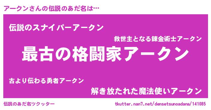 | 意味不明あだ名 | 『アークンフォーエバー』『自称アークン』 |