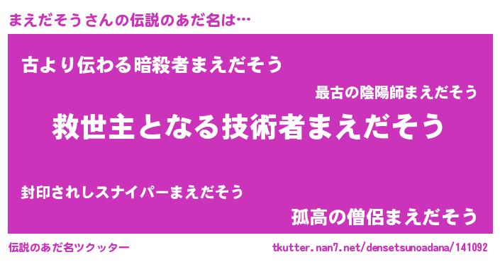 | 男性向けラノベタイトル風あだ名 | 『ノーゲーム・ノーマエダソウ』 |