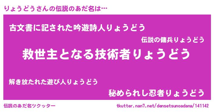 | ヒーロー風カッコイイあだ名 | 『天空の使者りょうどう』『仮面リョダー』 |