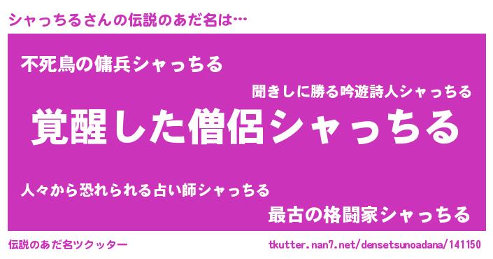 | 男性向けラノベタイトル風あだ名 | 『シャっちるの嫁は女の子じゃないと思った?』 |