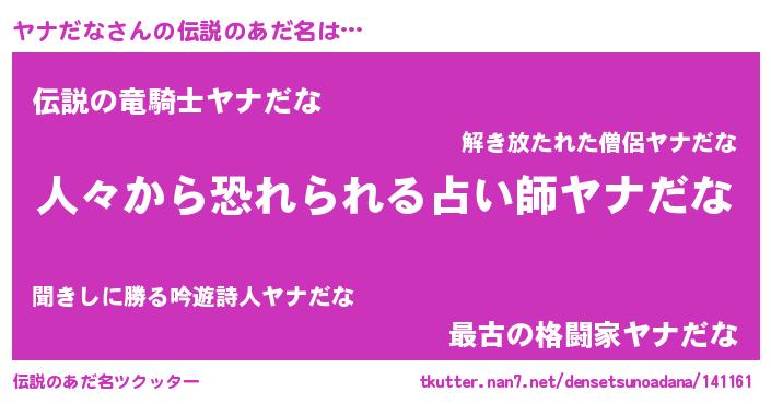 | 男性向けラノベタイトル風あだ名 | 『緋弾のヤナダナ』『ヤナだなの憂鬱』 |