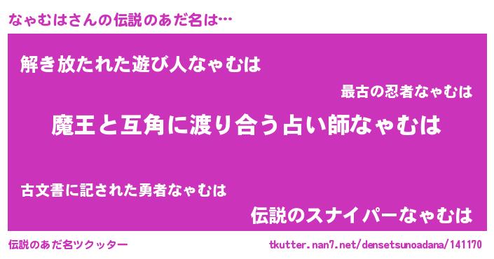 | ヒーロー風カッコイイあだ名 | 『愛の使者なゃむは』『魔戒騎士ナャ』 |