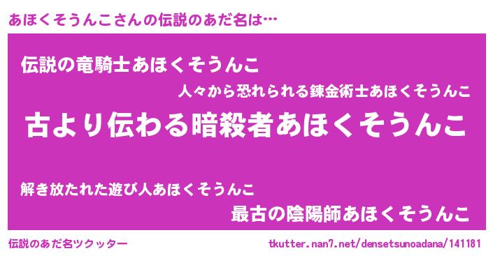 | ヒーロー風カッコイイあだ名 | 『ウルトラ戦士アホクソウンコ』 |