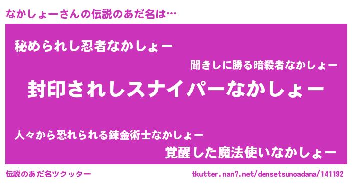 | 男性向けラノベタイトル風あだ名 | 『ナカショーアートオンライン』 |