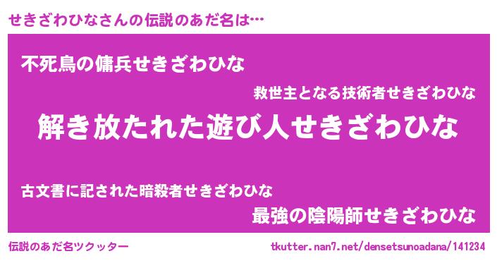 | 肩書あだ名 | 『せきざわひなプロデューサー』 |